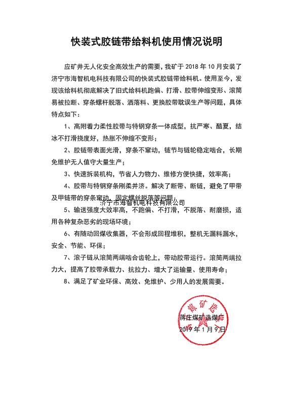 5、輸送強(qiáng)度大效率高,不跑偏、不打滑,不脫落、耐磨損,適用各種復(fù)雜惡劣的現(xiàn)場(chǎng)環(huán)境;