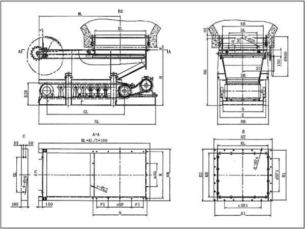 防砸閥門帶式(甲帶)給料機(jī)的外形及連接尺寸: