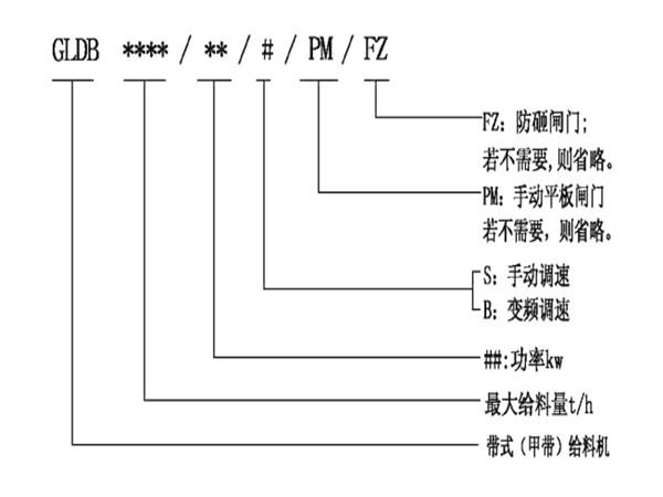 帶式(甲帶)給料機型號說明: